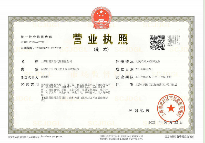 專業(yè)資質(zhì)齊全:具備危險品運輸經(jīng)營許可證、國際貨運代理資質(zhì)、報關(guān)企業(yè)注冊登記證書等全套資質(zhì),合規(guī)運營有保障;?